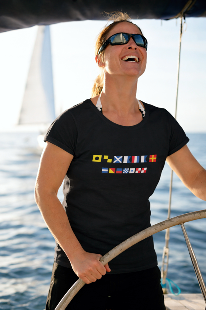 Suunnittele persoonallinen t-paita, johon painetaan haluamasi teksti meriaakkosilla. Täydellinen lahja veneilijälle tai omaan käyttöön!